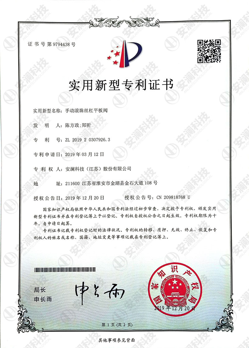 手动滚珠丝杠平板阀